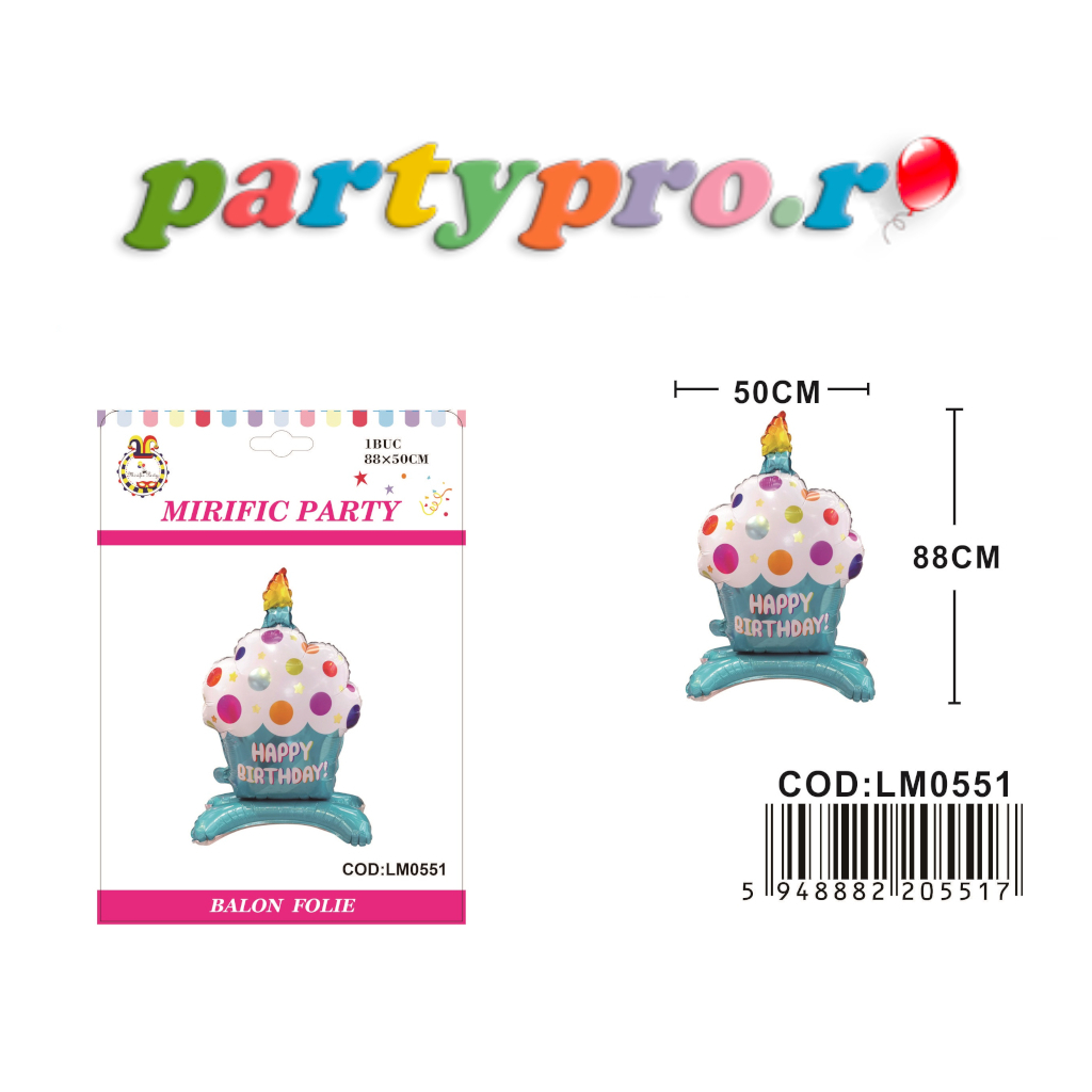 Balon party, folie metalizata albastru, 88×50 cm, briosa, happy birthday. Să înceapă petrecerea! Decorați spațiul și locația cu baloane aniversare party, culori metalizate, în forme diferite pentru diverse combinații. Aceste baloane se pot folosi la diverse aranjamente festive din baloane, umflate cu aer sau heliu, dispuse pe jos, ori inaltate. Baloanele cu heliu plutesc intre 12-14 ore iar umflarea se face cu putin timp inainte de eveniment, pentru a va putea bucura de ele pe toata durata evenimentului. Pentru umflarea baloanelor cu aer va recomandam pompele de umflat manual. Culoarea balonului neumflat difera de cea a balonului umflat. Baloanele se trimit neumflate, sunt din latex provenit din cauciuc natural si sunt prietenoase cu mediul fiind 100 % biodegradabile (durata de descompunere este de circa 6 luni).
