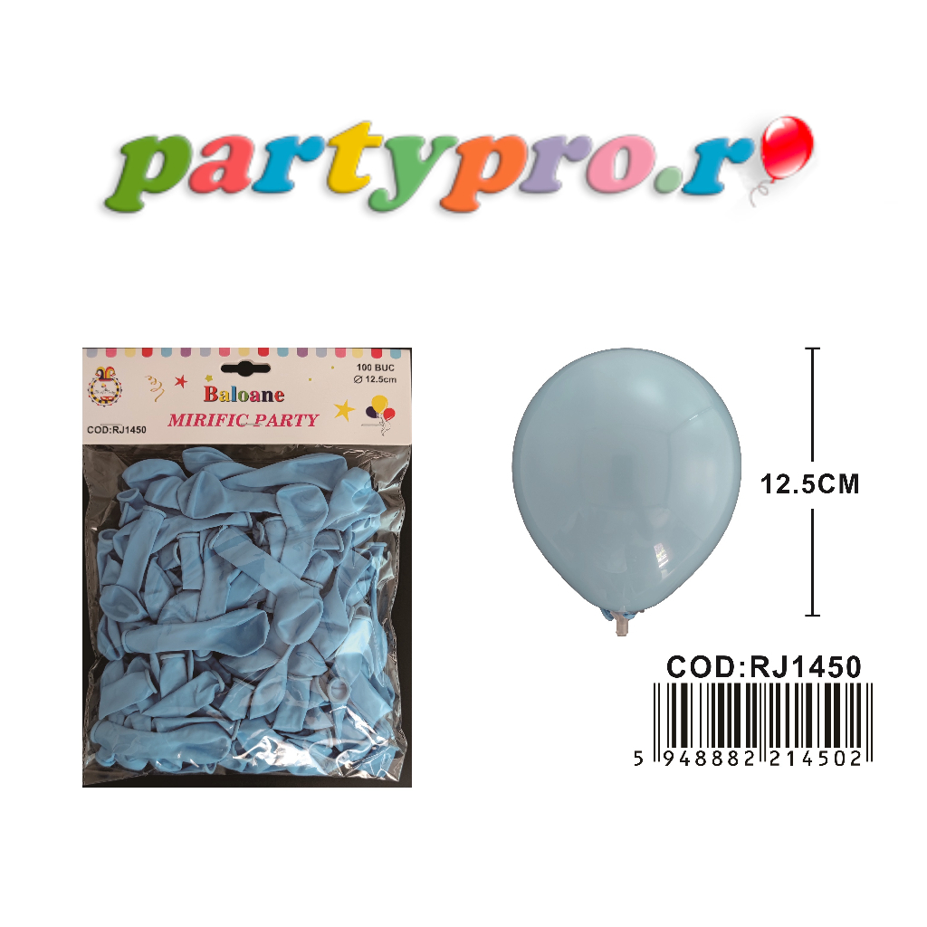 Balon party latex, albastru, 12.5 cm, 100 buc. Să înceapă petrecerea! Decorați spațiul și locația cu baloane aniversare party, culori metalizate, în forme diferite pentru diverse combinații. Aceste baloane se pot folosi la diverse aranjamente festive din baloane, umflate cu aer sau heliu, dispuse pe jos, ori inaltate. Baloanele cu heliu plutesc intre 12-14 ore iar umflarea se face cu putin timp inainte de eveniment, pentru a va putea bucura de ele pe toata durata evenimentului. Pentru umflarea baloanelor cu aer va recomandam pompele de umflat manual. Culoarea balonului neumflat difera de cea a balonului umflat. Baloanele se trimit neumflate, sunt din latex provenit din cauciuc natural si sunt prietenoase cu mediul fiind 100 % biodegradabile (durata de descompunere este de circa 6 luni).
