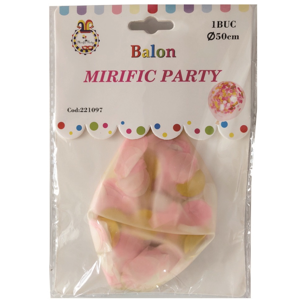 Balon party, latex transparent, 50 cm, paiete colorate. Să înceapă petrecerea! Decorați spațiul și locația cu baloane aniversare party, culori metalizate, în forme diferite pentru diverse combinații. Aceste baloane se pot folosi la diverse aranjamente festive din baloane, umflate cu aer sau heliu, dispuse pe jos, ori inaltate. Baloanele cu heliu plutesc intre 12-14 ore iar umflarea se face cu putin timp inainte de eveniment, pentru a va putea bucura de ele pe toata durata evenimentului. Pentru umflarea baloanelor cu aer va recomandam pompele de umflat manual. Culoarea balonului neumflat difera de cea a balonului umflat. Baloanele se trimit neumflate, sunt din latex provenit din cauciuc natural si sunt prietenoase cu mediul fiind 100 % biodegradabile (durata de descompunere este de circa 6 luni).