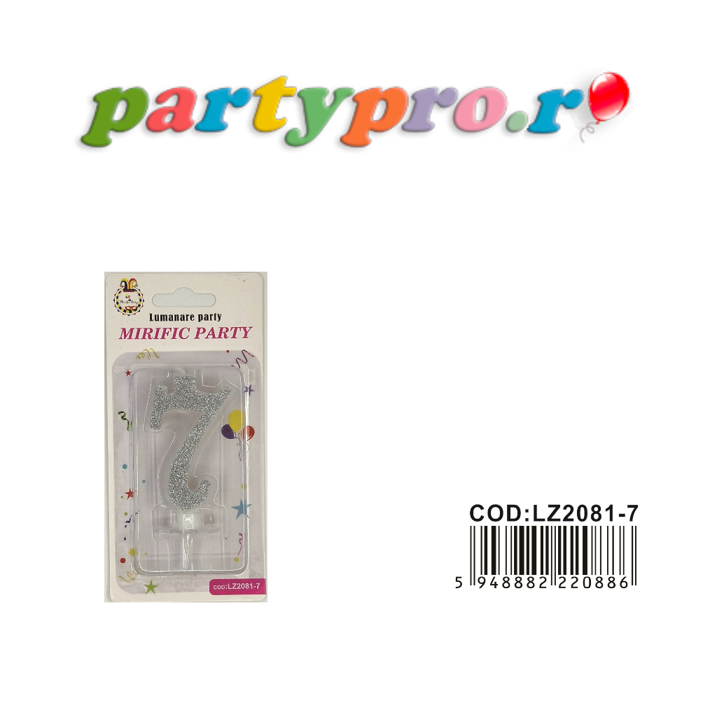 Lumanare tort argintiu cu reflexii sclipitoare (sclipici), 6 cm, cifra 7. Sărbătoriți cu savoare! Pentru petrecerile aniversare, decorați tortul cu lumânări festive în formă de cifre pentru diverse combinații. Scoateți în evidență momentul culminant al petrecerii cu nelipsitele lumânări decorative.