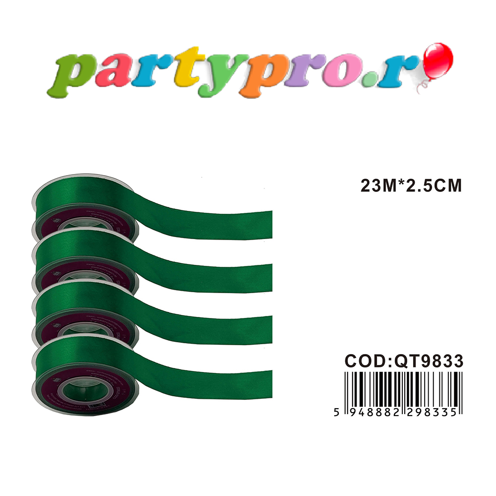 Panglică Satin verde, 23 m x 2.5 cm, QT9833. Soluțiile pentru ambalare sunt versatile și utilizate pentru a adăuga un aspect rafinat și sofisticat cadoului. Acestea pot fi folosite într-o varietate de moduri creative și pot aduce un plus de frumusețe cadoului pe care îl oferi celor dragi ție.