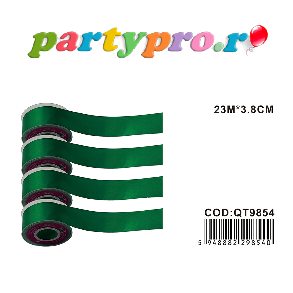 Panglică Satin verde, 23 m x 3.8 cm, QT9854. Soluțiile pentru ambalare sunt versatile și utilizate pentru a adăuga un aspect rafinat și sofisticat cadoului. Acestea pot fi folosite într-o varietate de moduri creative și pot aduce un plus de frumusețe cadoului pe care îl oferi celor dragi ție