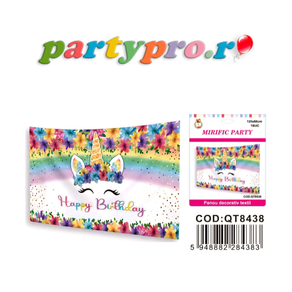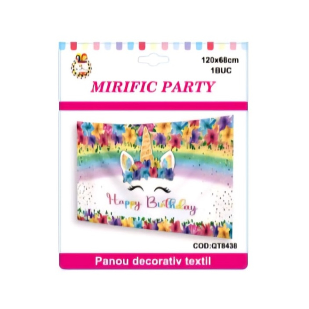Panou textil decorativ multicolor, 120×68 cm, unicorn, PPQT8438. Fie că ești la o aniversare, petrecere sau vacanță, accesoriile de petrecere sunt cele mai esențiale când vine vorba de distracție! Surpinde fiecare moment alături de cei dragi cu accesoriile party care îți vor garanta o petrecere reușită și memorabilă.