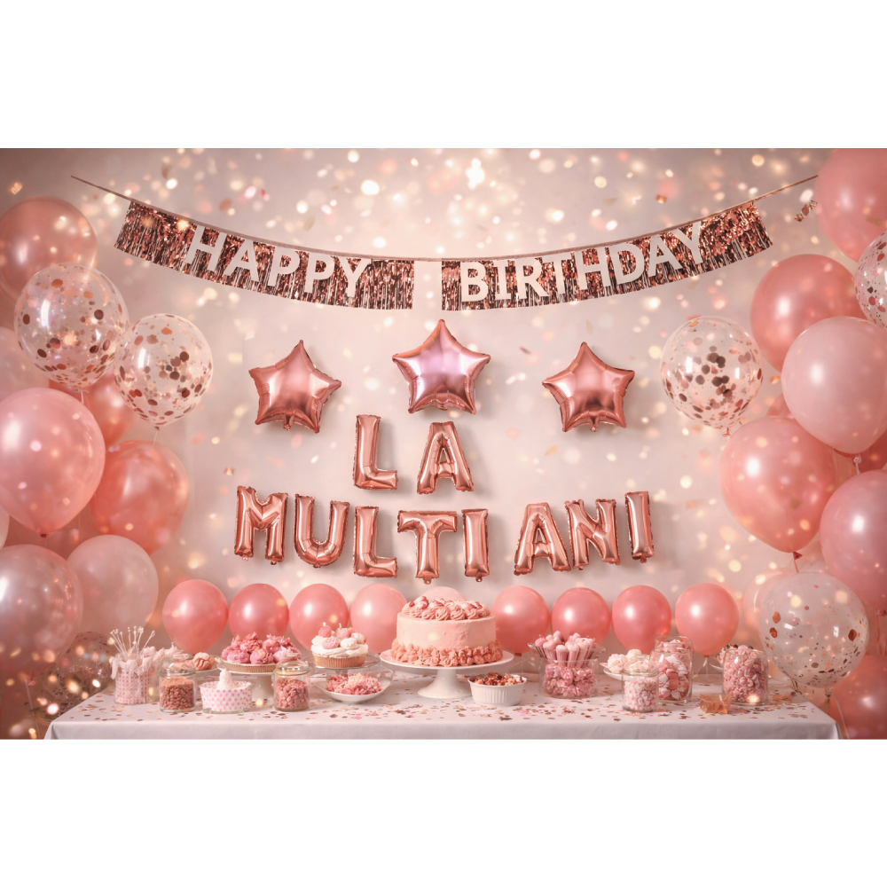 Set 22 baloane party, roz gold, TZ5272, la multi ani