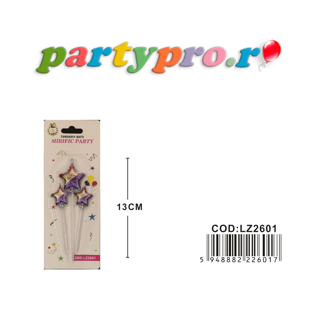 Set 3 lumânări tort multicolor, 13 cm, stea, la mulți ani. Sărbătoriți cu savoare! Pentru petrecerile aniversare, decorați tortul cu lumânări festive în forme diferite pentru diverse combinații. Scoateți în evidență momentul culminant al petrecerii cu nelipsitele lumânări decorative.