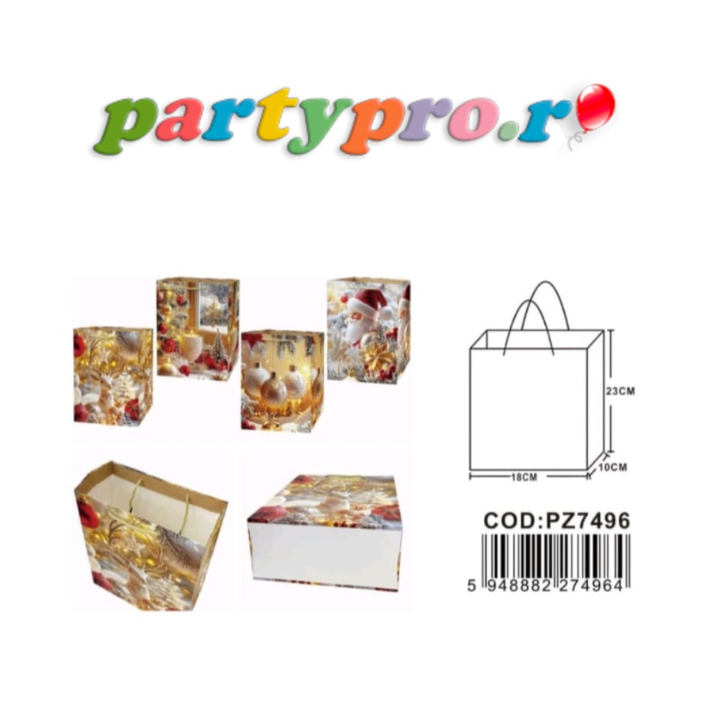 Oferă-le un cadou familiei și prietenilor cu pungile decorative. Sunt de diferite forme și modele pentru a se potrivi cu orice temă de petrecere sau eveniment. Set 4 pungi cadou, auriu, 23x18x10 cm, Crăciun, PPPZ7496.