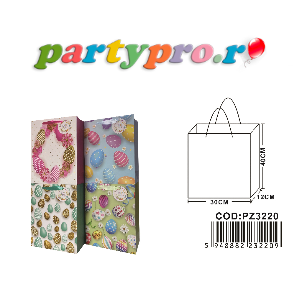 Set 4 pungi cadou multicolor, 40x30x12 cm, ouă colorate, paște. Cel mai frumos cadou vine din interior, cât și din exterior. Pungile de petrecere sunt ideale pentru a le oferi cel mai frumos cadou prietenilor și celor dragi ție. Sunt economice și disponibile într-o gamă largă de culori și modele pentru a se potrivi cu orice temă de petrecere sau eveniment.
